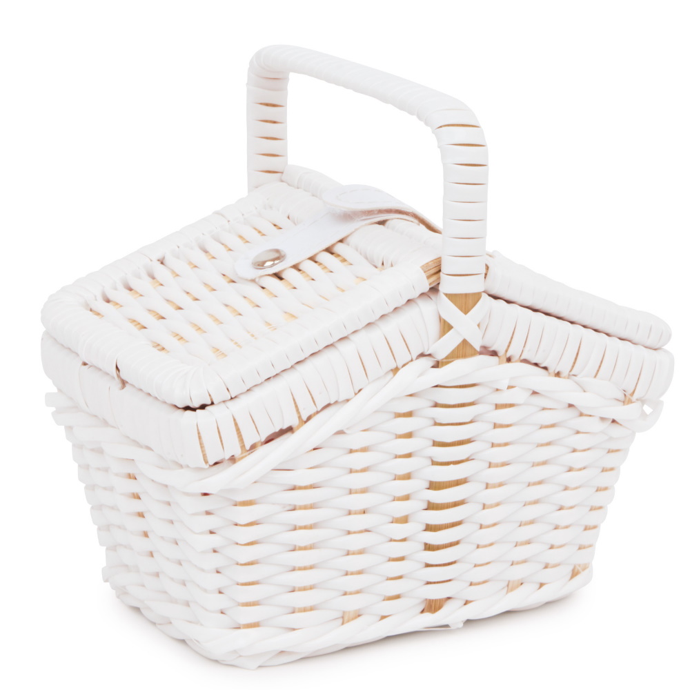 Dieser weiße Picknickkorb ist für kleine Puppenmamis gedacht, die mit ihren Püppchen oder Kuscheltieren schon immer mal eine lustige Teeparty veranstalten wollten. Das Zubehör kann wunderbar im Korb aus Kunststoffgeflecht transportiert werden. Ein niedliches Mini-Picknick-Set im hübschen weißen Klappkorb. Das zarte weiße Service ist liebevoll mit kontrastierendem Pünktchen-Dekor versehen.